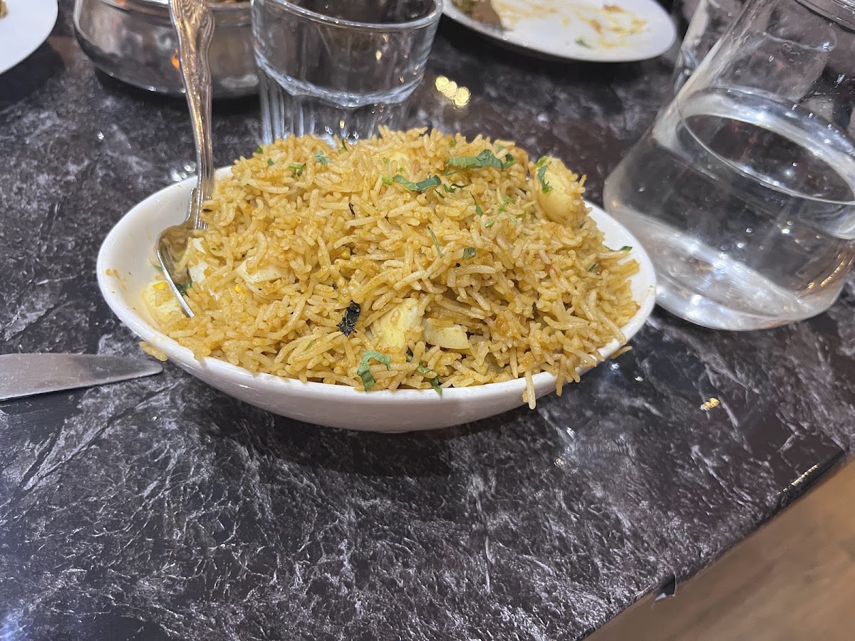 Namasthe Hounslow is a solid 5-star spot if you’re craving bold, spicy South Indian food with real Hyderabadi flair. We came here for lunch and were seriously impressed with both the flavour and portion sizes. We ordered the prawn biryani, which was absolutely packed with Hyderabadi spices — rich, aromatic, and very spicy (in a good way!). The portion was huge, easily enough for two if you're not super hungry. Every bite had that deep, slow-cooked biryani flavour you can only get when it’s done right. We also tried the masala dosa — it was a bit different from the usual Chennai-style dosas I’m used to, slightly thicker and with a twist on the masala filling, but it was still super tasty. Definitely a nice change of pace. The paneer tikka was another win — no gravy, just marinated and grilled to perfection with that smoky char and a punchy spice rub. It made a great starter and paired well with the rest of the meal. To top it off, the filter coffee was really good — strong, smooth, and just what we needed after all the spice. No-frills setting, but amazing food. If you love real heat and flavour, definitely check it out!